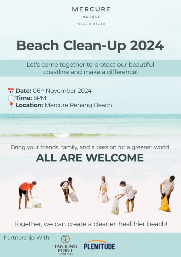 World Beach Clean Up 2024 👤 Organized By: 📅 Nov 6, 2024 – Nov 6, 2024 📍 Venue at: Mercure Penang Beach Resort, Tanjung Bungah Join Us for a Beach Clean-Up Day! In Celebration of World Beach Clean-Up Day 📅 Date: November 6, 2024 📍 Location: Mercure Penang Beach Resort, Tanjung Bungah Mercure Penang Beach is excited […]