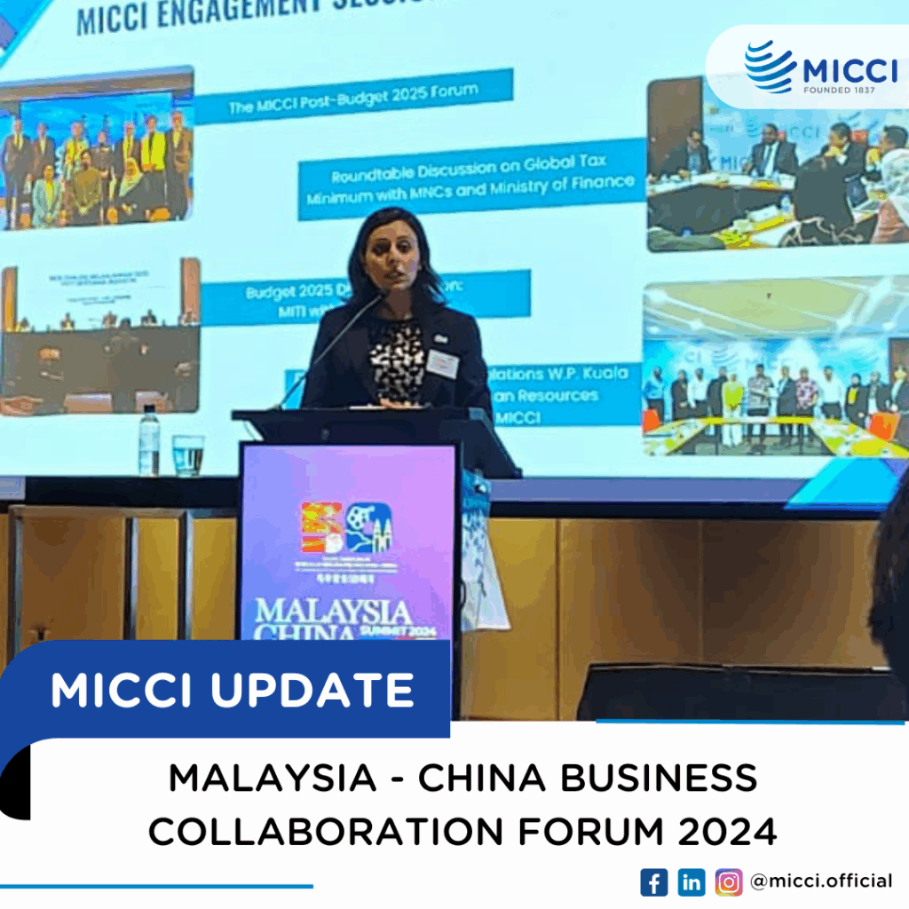MALAYSIA – CHINA BUSINESS COLLABORATION FORUM 2024 : By marcom@micci.com : Dec 24, 2024 On 19th December 2024, MICCI was invited to participate in the Malaysia-China Business Collaboration Forum. During the event, MICCI’s General Manager, Ms. Harpreet, delivered opening remarks, highlighting MICCI’s 180-year legacy and its diverse General Committee representing various industries such as manufacturing, logistics, […]