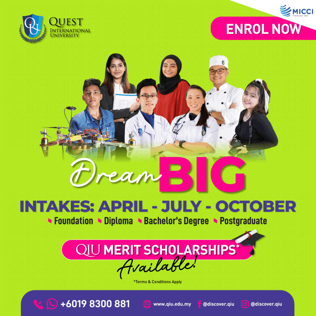 [INFO] Dream BIG at Quest International University : By admin@admin.com : Sept 9, 2021 Education is for everyone. Find out how our member Quest International University’s foundation, diploma, degree and postgraduate programmes will help you achieve those big dreams of yours! Enquire to find out more about their merit scholarships offered which are available until the […]