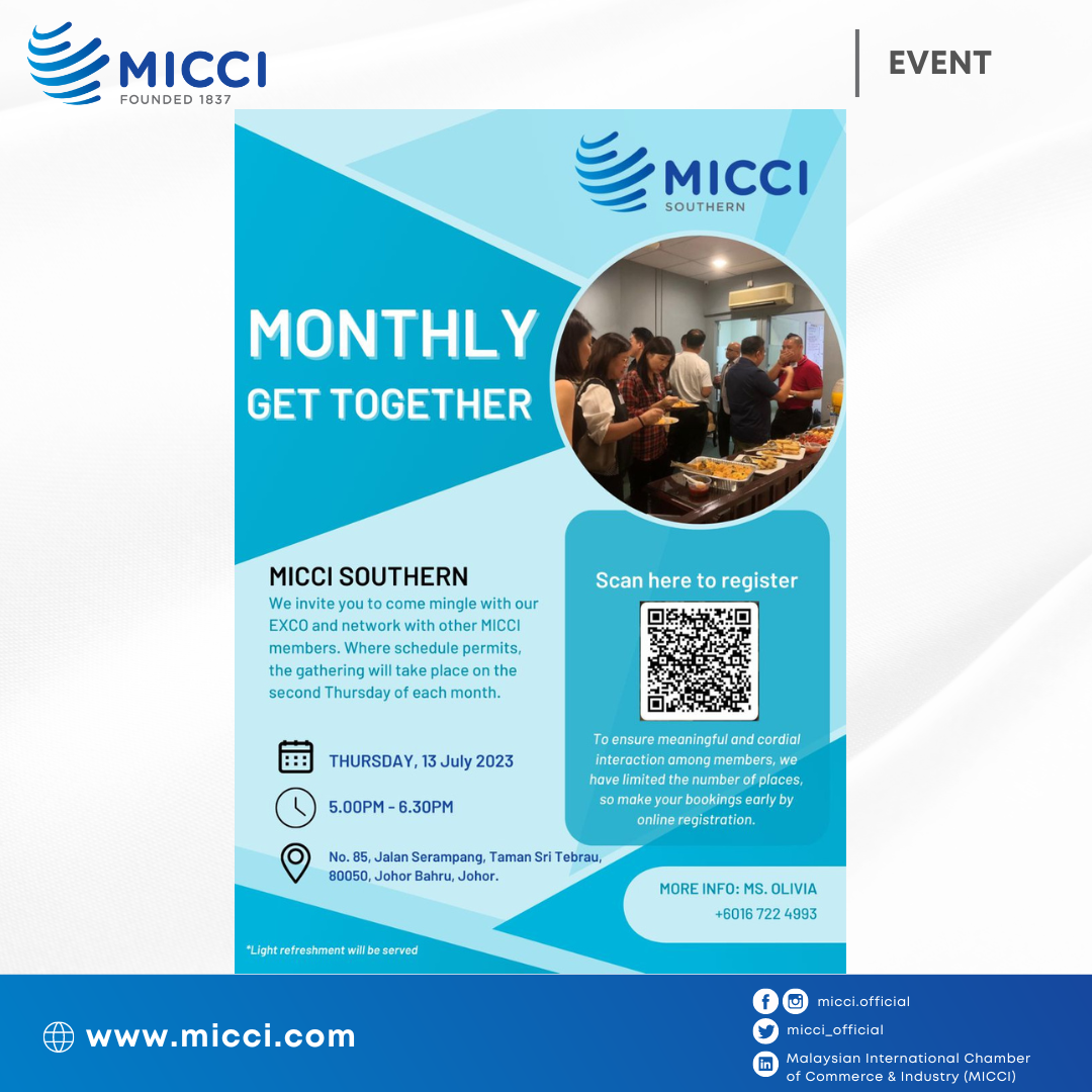 You are cordially invited to MICCI Southern Region’s July 2023 “Monthly Get Together” gathering.