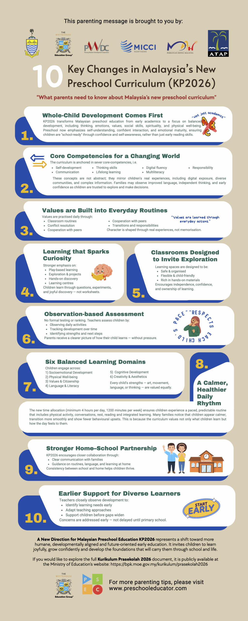 Beginning 2026, Malaysia will introduce the Kurikulum Prasekolah 2026 (KP2026), a renewed national preschool curriculum designed to support children in more holistic and meaningful ways.